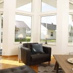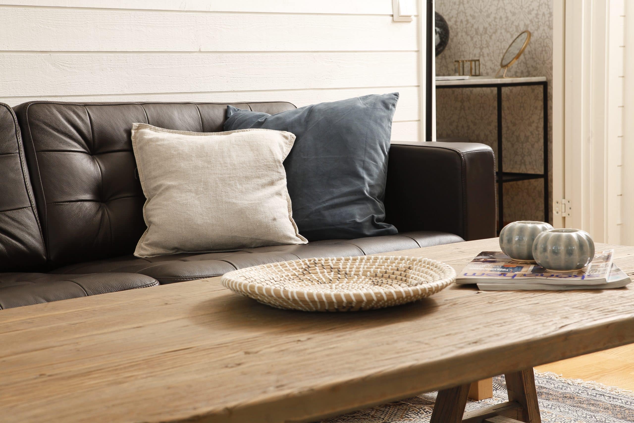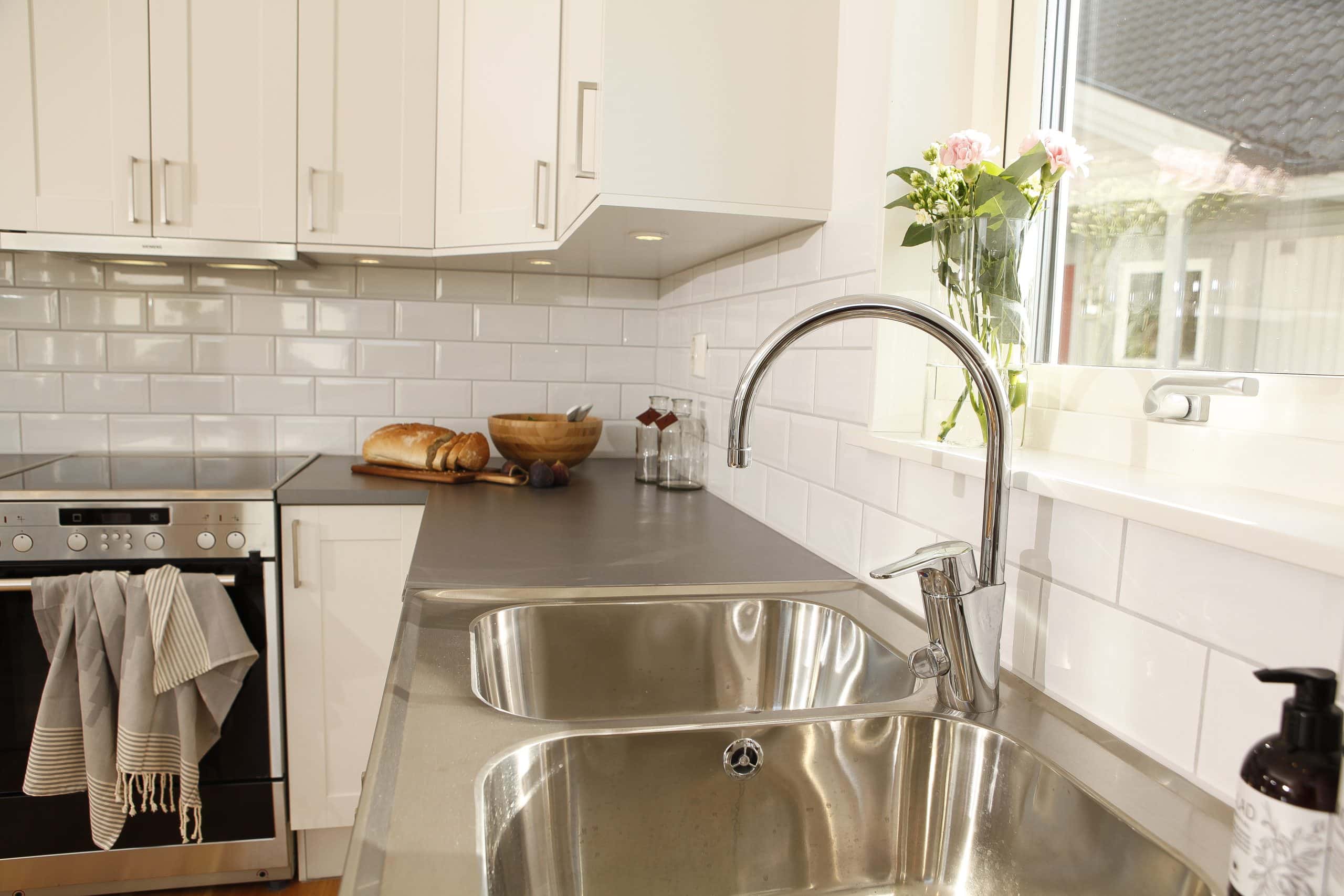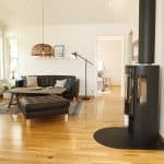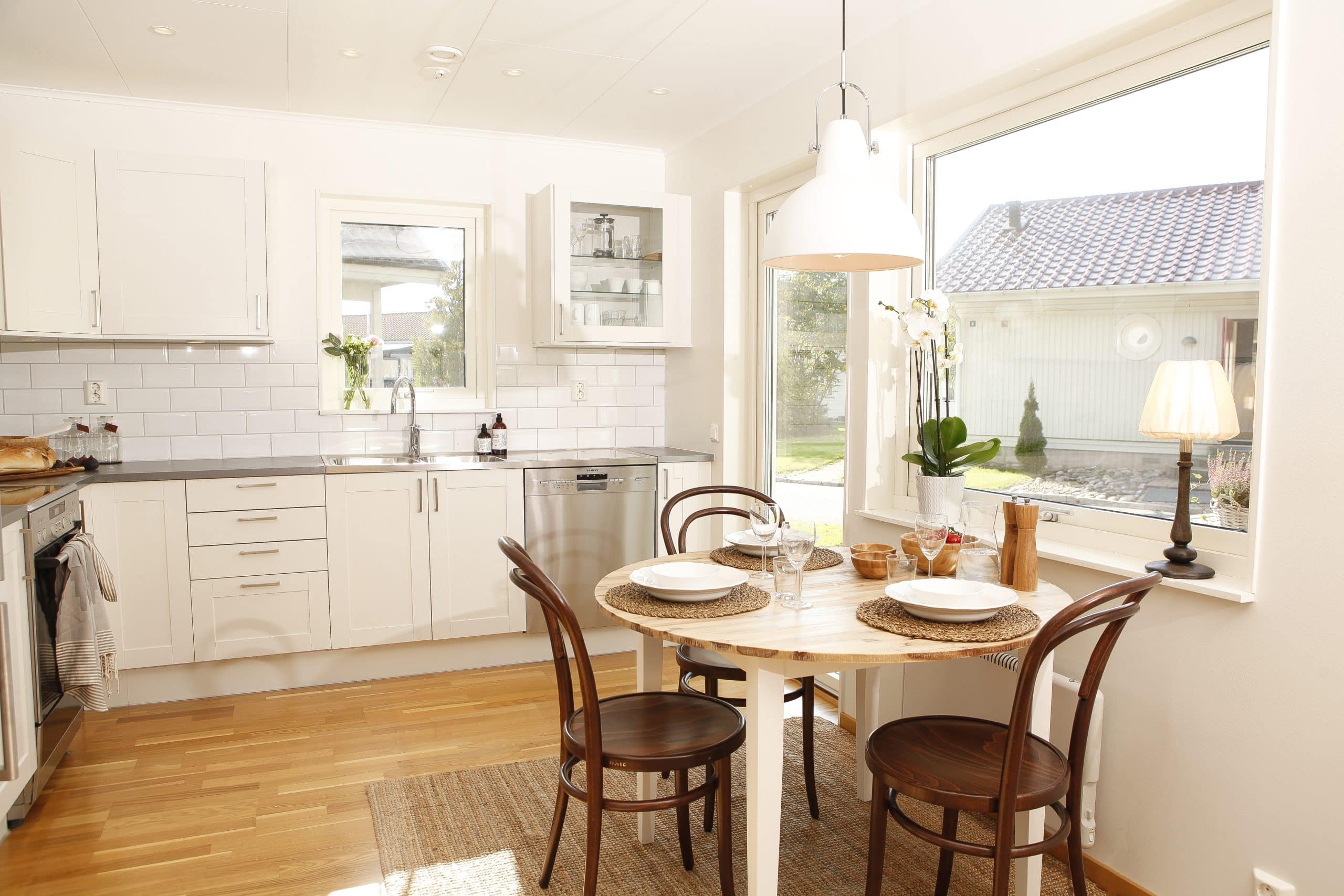 Effekt 97 är ett vackert fritidshus som har en planlösning där kök och vardagsrum är vänt åt samma håll.