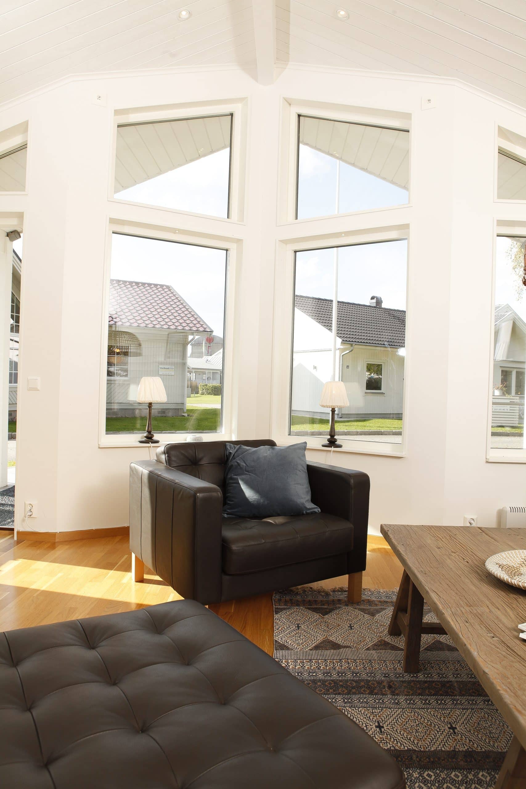 Ett stort och rejält kök, vardagsrum med ryggåstak och ljusinsläpp utöver det vanliga. Genom fönsterdörrarna i sällskapsrummen tar du dig enkelt ut till uteplatsen och den omgivande naturen. Vi har försett uteplatsen utanför vardagsrummet med ett praktiskt tak som skyddar mot väder och vind. Dessutom rymmer huset en väl avvägd entré, tre fina sovrum, WC och två klädkammare. Allt på mindre än 80 m2. Ett fritidshus för hela familjen.